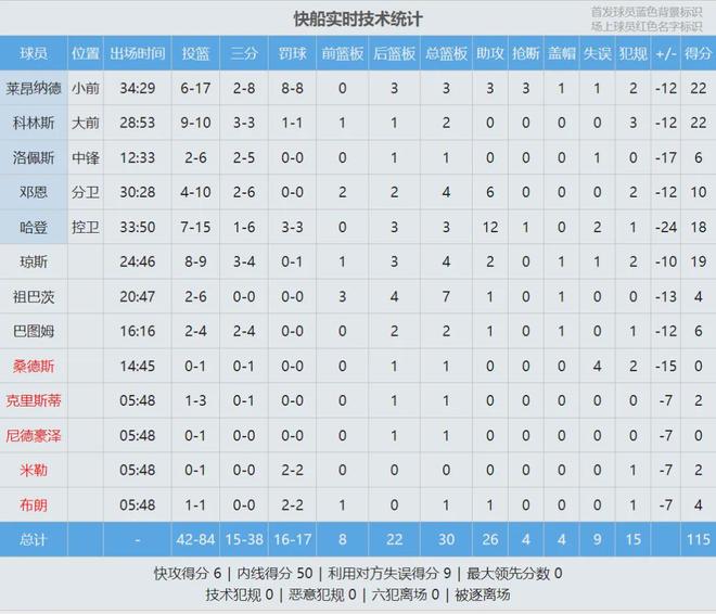 祖巴茨替補打了21分鐘,投籃6中2,拿到4分7籃板1助攻,正負值-13。最后看看數據,說說你的心情: