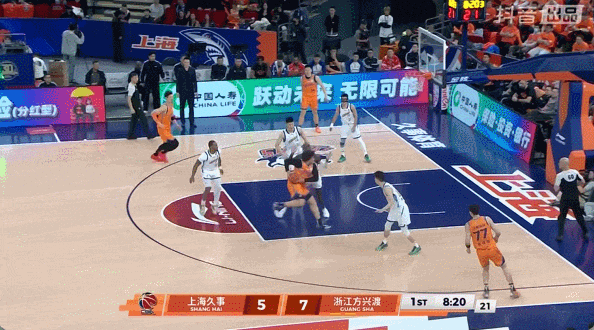 本場比賽,上海男籃依舊是王哲林、張鎮麟、李弘權和雙外援洛夫頓、古德溫的先發陣容。開場后,洛夫頓保持了火熱手感,連續三次籃下進攻得手,外線也投中一個三分球,個人首節獨得12分,李弘權三分球也兩投全中。客隊則保持了超高的三分球命中率,首節投中5個三分球,兩隊戰成28:28平。