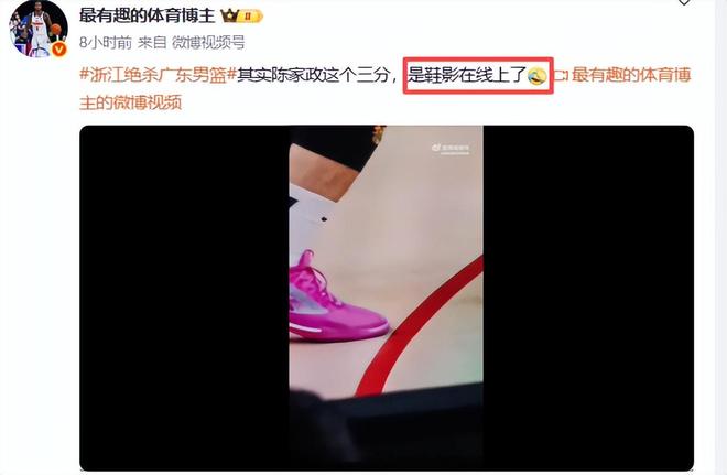 加時賽最爭議的兩個吹判是,陳家政的三分究竟是不是踩線了,雖然裁判看了回放,判陳家政踩線了,但是不是第一回合結束后看回放,而是打了第二個回合才看回放,這是非常荒唐的事,陳家政打平和反超一分后的廣東隊進攻方法是不相同的,這完全影響了廣東隊的進攻策略。有媒體人曬出視頻,證明陳家政并未踩線,是一個三分球。媒體人“最有趣的體育博主”指出:其實陳家政這個三分,是鞋影在線上了。也就是說陳家政的鞋并未踩線,而是鞋影在線上的,裁判誤把鞋影當成了踩線,你說這冤不冤?
