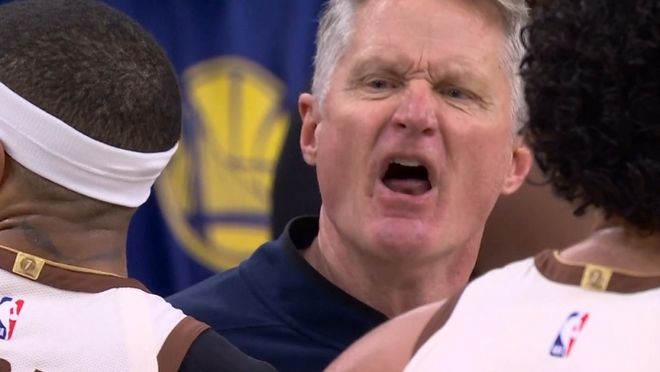 當時在比賽第四節勇士追分時刻,先是庫里被犯規隨后一扔彩虹拋投打進,裁判吹罰提前犯規,并沒有給2+1。看到這一幕的科爾非常不理解,直接怒噴裁判,但是被助教拉住。