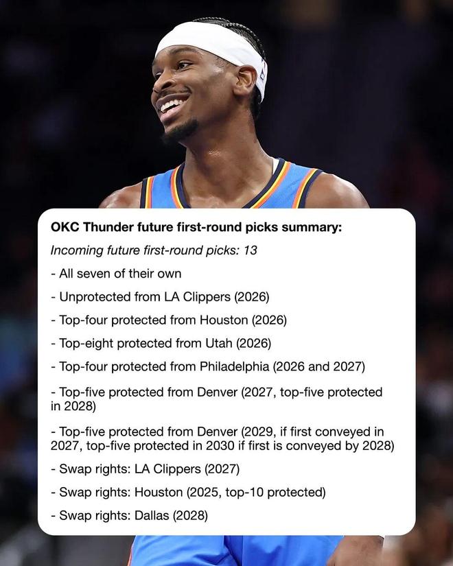 不過正因近況糟糕(6勝6負),且恰好趕上了交易期,外界認為急眼的雷霆或許會有大動作,他們應該是全聯盟最有資格梭哈的隊伍,未來手握13個首輪簽+3個選秀互換權。