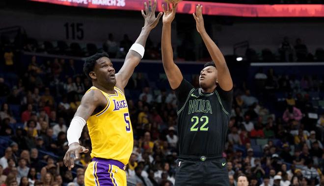 數(shù)據(jù)方面,鵜鶘這邊,特雷-墨菲42分5籃板;杰里邁亞-費爾斯9分4籃板2搶斷;德里克-奎因10分13籃板8助攻2搶斷;蔡恩-威廉森15分4籃板5助攻;伊夫-米西8分7籃板。湖人這邊,盧卡-東契奇30分10助攻2搶斷;勒布朗-詹姆斯30分8籃板8助攻2搶斷;馬庫斯-斯馬特13分6籃板4助攻;德安德烈-艾頓18分11籃板2蓋帽;賈里德-范德比爾特7分8籃板4助攻2搶斷。