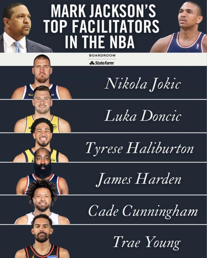 最近Boardroom× State Farm發布了“馬克·杰克遜評選的NBA頂級組織者”榜單。約基奇、東契奇、哈登等球員入選,名單里還放進了哈利伯頓、特雷·楊、康寧漢姆。庫里、詹姆斯這些同樣以組織帶動進攻聞名的球員沒在榜單里。中鋒和后場核心被放在同一張榜單里排序,順序一出來,爭議自然就跟著來了。(數據截至北京時間2025年12月25日)
