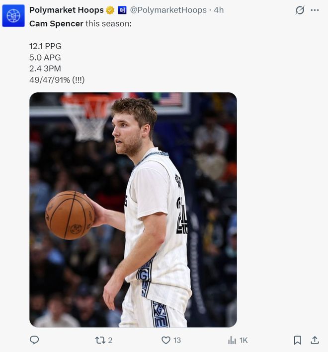 斯潘塞是2024年次輪53順位被灰熊選中的淘金選手,他24-25賽季是拿雙向合同,2025年夏灰熊才跟他簽下一份四年1039萬的合同,本賽季年薪只有253萬,沒想到莫蘭特本賽季又是各種傷停,這讓他有了嶄露頭角的機會。