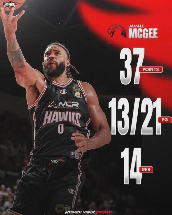 本賽季效力澳洲聯賽NBL的麥基,為老鷹隊效力期間,場均砍下21.3分10.1板1.9助2.1帽1.1斷全面數據,即將38歲的他在NBA之外的聯賽照樣可以瘋狂亂殺。