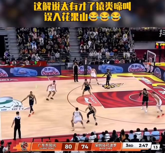 本場(chǎng)比賽解說(shuō)員(據(jù)說(shuō)叫宋庭)對(duì)此發(fā)表了他對(duì)于這一聲吼叫的解讀:“剛才是聽(tīng)到誰(shuí)就是要球的聲音,特別的有喜感,特別像猿類啼叫的聲音,感覺(jué)像誤入了花果山”。經(jīng)常關(guān)注CBA的球迷,應(yīng)該都知道這句話說(shuō)的是什么。