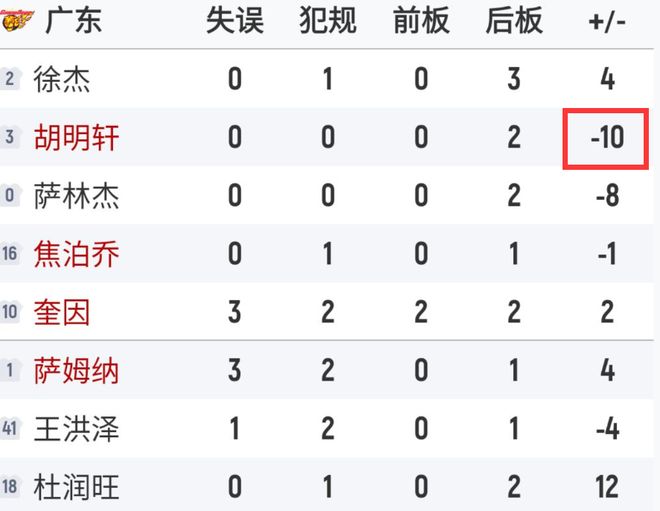 依舊很難評,按廣東隊的陣容本可以不用打的這么艱難的,只能說這一場又有人拖后腿了,首當其沖的正是胡明軒,上半場0分,下半場僅得3分,其次是張皓嘉和王洪澤,張皓嘉本場僅得3分對位防不住賀希寧、史密斯,王洪澤只有1分1板,完全被周鵬、王浩然碾壓,撞到新秀墻了。