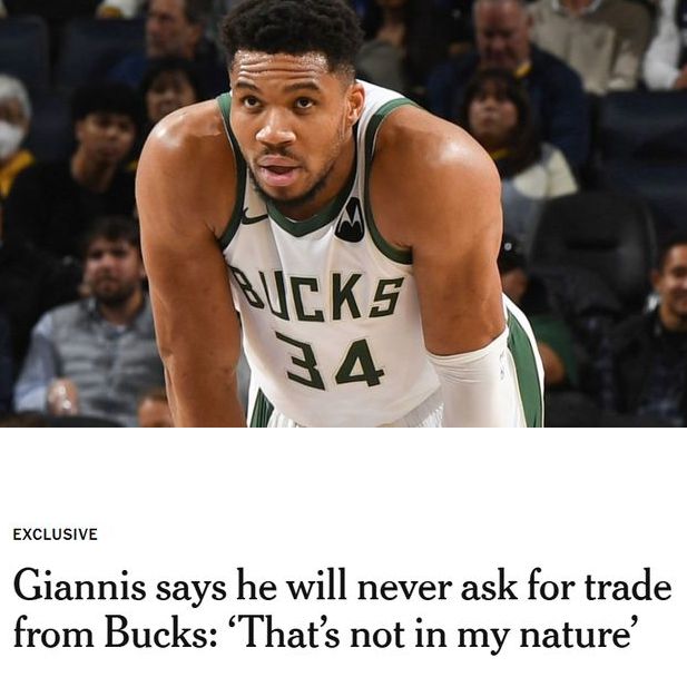 - 字母哥:我永遠不會提出交易申請,愿奉獻整個生涯除非雄鹿不要我
