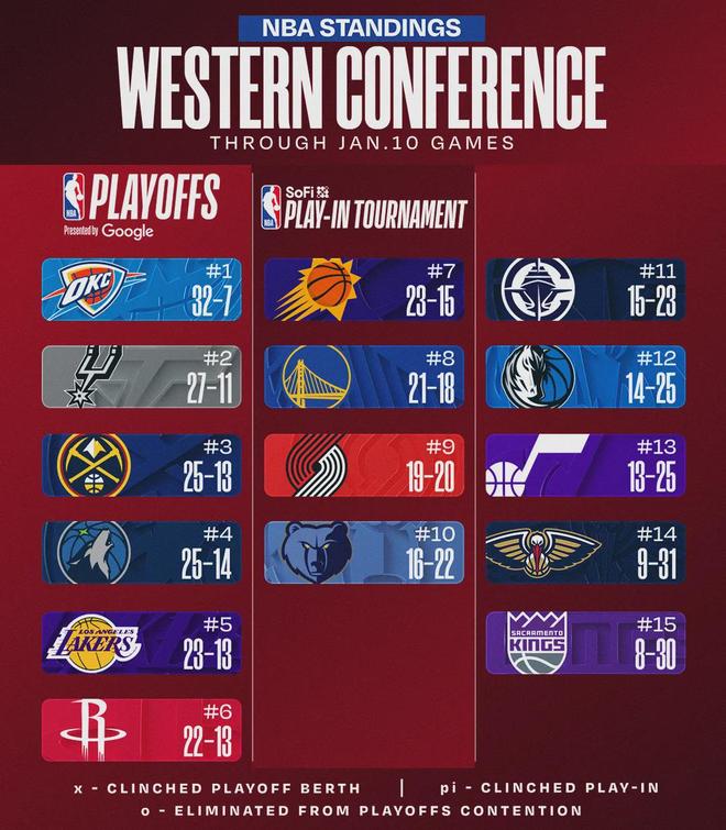 最后來看看各隊最新排名,快船距離西部第六還差8.5個勝場。等到常規(guī)賽結(jié)束時,你覺得快船能沖進西部前六嗎?