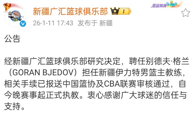 - 新疆男籃正式官宣!國家隊教練走馬上任,成為主帥,全力沖擊前八