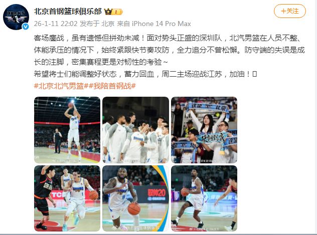 反觀北京官微發(fā)文總結(jié)還是以打氣為主:“客場鏖戰(zhàn),雖有遺憾但拼勁未減!面對勢頭正盛的深圳,北京在人員不整、體能承壓的情況下,始終緊跟快節(jié)奏攻防,全力追分不曾松懈。防守端的失誤是成長的注腳,密集賽程更是對韌性的考驗。希望將士們能調(diào)整好狀態(tài),蓄力回血,周二主場迎戰(zhàn)江蘇,加油!”