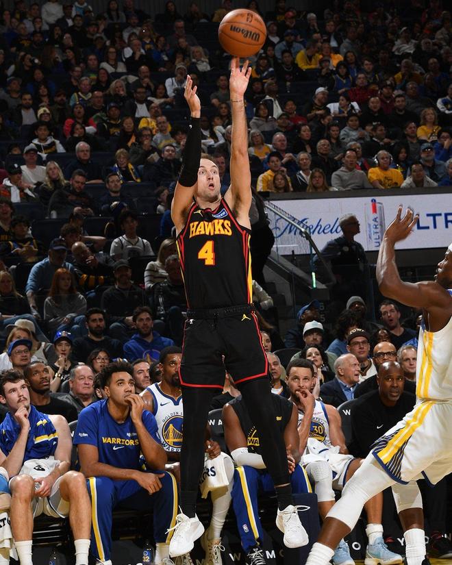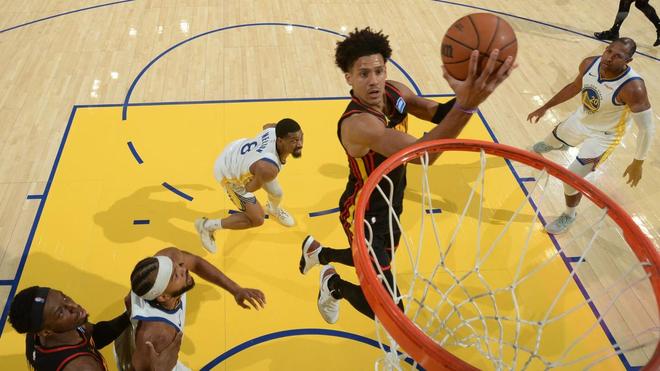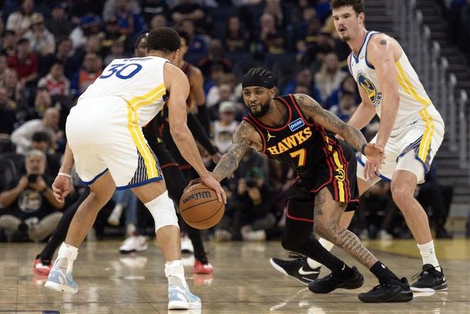 次節(jié)較量,兩隊(duì)展開對(duì)轟之勢(shì),老鷹進(jìn)攻勢(shì)頭更猛。庫里、巴特勒手感不減,但是勇士外線命中率低下,亞特蘭大依靠著內(nèi)外開火得以反超比分。半場(chǎng)打完,亞特蘭大以59比53領(lǐng)先,勇士單節(jié)以25比32落后。