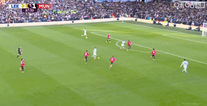 第62分鐘,海文防守不利,阿倫森小角度破門,利茲聯1-0領先曼聯!