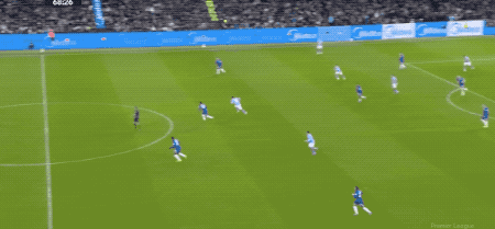 第35分鐘,接到羅德里的傳球,B席禁區(qū)內(nèi)如跳舞一般上演連續(xù)假動作,古斯托一個(gè)踉蹌,B席的射門沒能命中目標(biāo)。