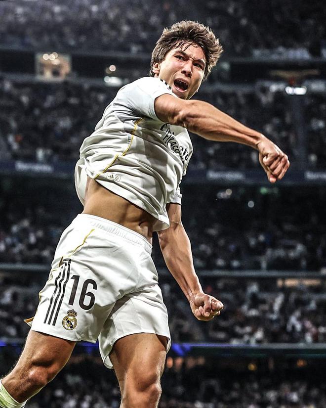 第82分鐘,居萊爾送出妙傳,貢薩洛·加西亞用一記腳后跟神龍擺尾完成帽子戲法,伯納烏徹底沸騰。