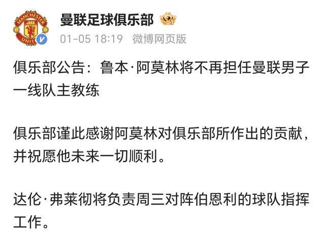 2026年1月5日,曼聯官方公告瞬間引發足壇熱議,主教練魯本-阿莫林正式下課!