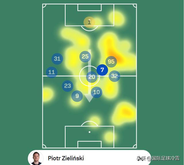 這一戰澤林斯基的位置其實相對比較靠后,拼搶力度也很大(他頭上腳下有7次一對一對抗,這遠超他日常的場次),但真正出現機會后,澤林一錘定音的能力,確實在國米這批中場球員中屬于頂尖水平。