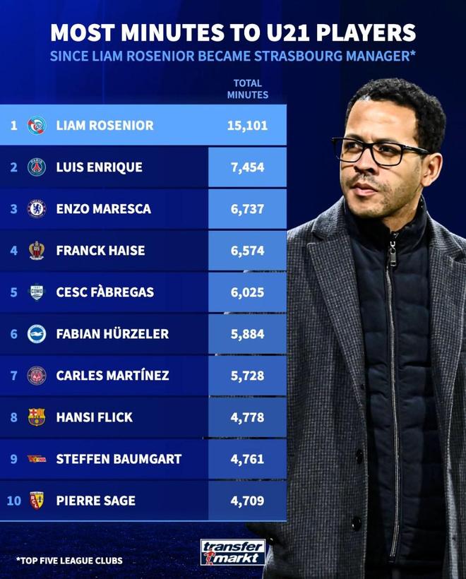 北京時(shí)間1月6日,在切爾西官宣羅塞尼爾成為球隊(duì)新任主帥之后,來自德轉(zhuǎn)的統(tǒng)計(jì)指出,自2024年7月羅塞尼爾開始執(zhí)教斯特拉斯堡以來,這位現(xiàn)年41歲的英格蘭教頭是歐洲五大聯(lián)賽俱樂部中給予U21球員最多出場時(shí)間的主教練。