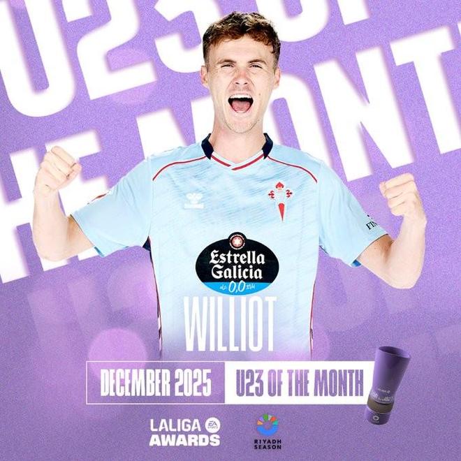 北京時間1月6日,西甲官方宣布,塞爾塔前鋒斯韋德貝里當選聯賽12月最佳U23球員。