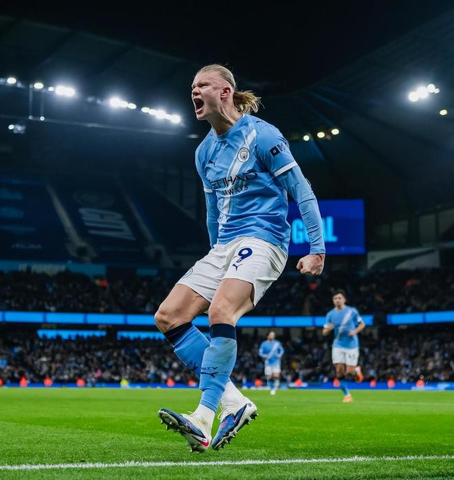 在頂住對手一段時間后,曼城才逐漸找到自己的節奏;第21分鐘,多庫小角度似傳似射,皮球滑門而過;第25分鐘,阿克傳中,哈蘭德搶點打門偏出;第41分鐘,多庫突破到禁區內被迭戈-戈麥斯直接撂倒在地,主裁判觀看VAR后吹罰點球,哈蘭德操刀主罰命中,1:0!哈蘭德打破了近3場0球0助攻,英超進球數已經超越了德羅巴;同時哈蘭德曼城生涯各項賽事173場比賽已打入150球,其中包括本賽季26球。