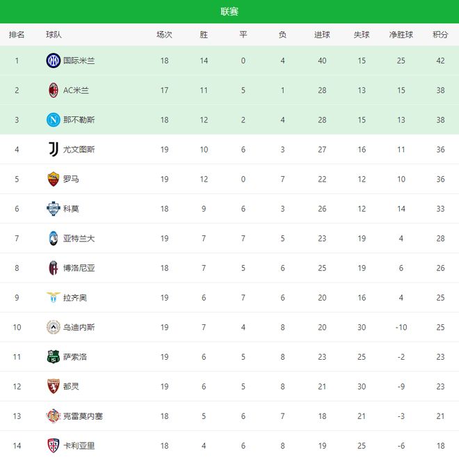 - 2-0!2-2!意甲最新積分榜:國米穩居榜首,那不勒斯拉齊奧齊丟分