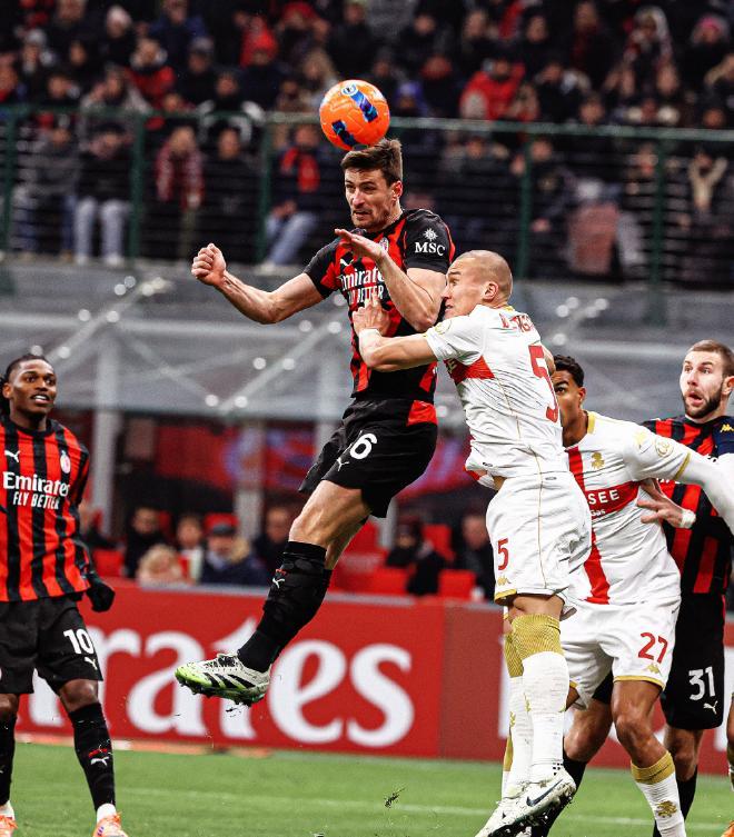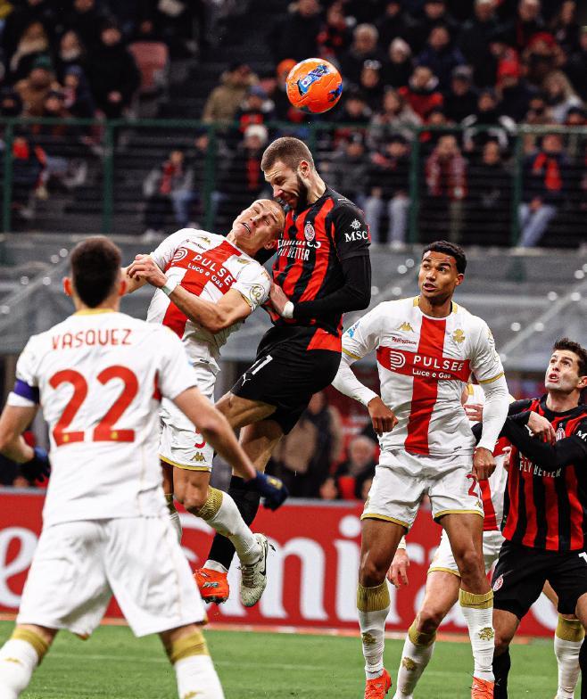 易邊再戰,AC米蘭明顯加大了進攻端的投入,第59分鐘右側角球開出后,加比亞前點頭球一蹭,后點的普利西奇接力破門得分,但主裁判回看VAR后示意手球,取消了這一粒進球,6分鐘之后,米蘭再次形成進攻,可惜巴爾泰薩吉左路的推射稍稍偏出。