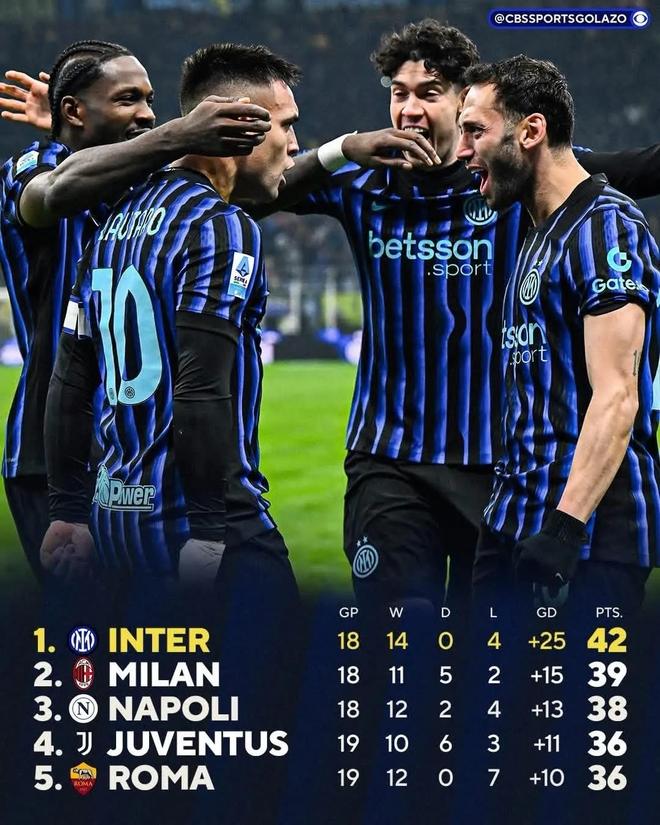 因為身后的米蘭和那不勒斯本輪都只拿到1分,與榜首國米的分差分別被拉大到3分和4分,國米終于打出了一場比賽的容錯度,在一月份雙線作戰的密集賽程里可以有一定的心理優勢。